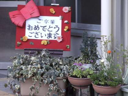 玄関前にも広報局員や美術部が製作してくれたメッセージボードが飾られています。