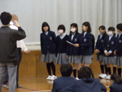 集会のはじめに表彰を行いました。