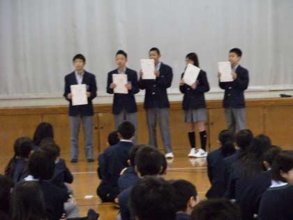 先日行われた学年レクレーションの表彰と皆勤賞の表彰です。