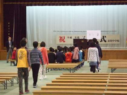 入学式リハーサルの様子です。明日の本番に向けて一生懸命説明を聞いていました。