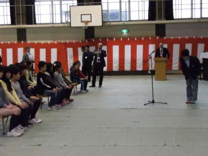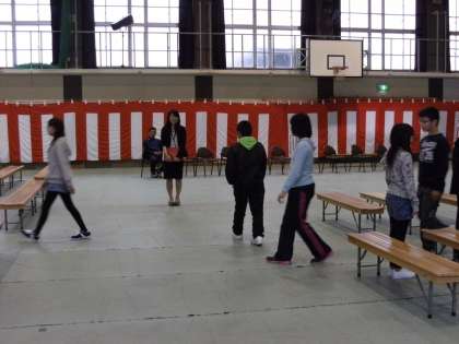 在校生の「歓迎の言葉」、新入生の「誓いの言葉」のあと、退場の練習をしました。