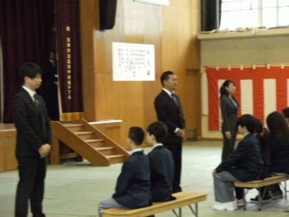 閉式の言葉のあと、担任の先生を先頭に新入生の退場です。