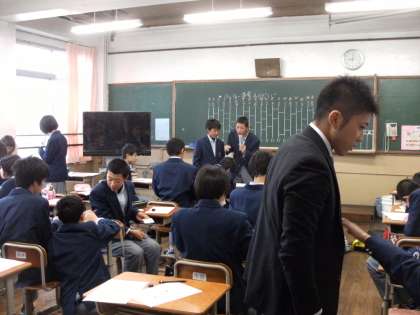 写真は2年生の様子です。自己紹介をしているクラスや今年の目標(抱負)をカードに記入したりするクラスがありました。