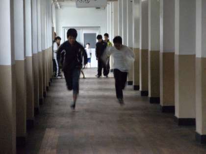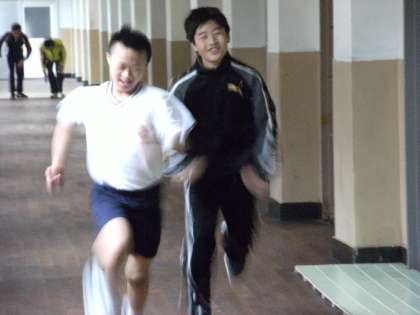 陸上競技部の様子です。校舎内でランニング、軽いダッシュをしていました。