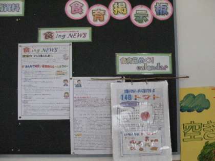写真は、配膳室横の食育掲示版です。
