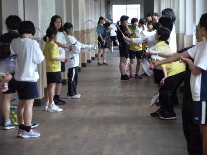 バドミントン部の様子です。ランニングのあと、素振りをしていました。