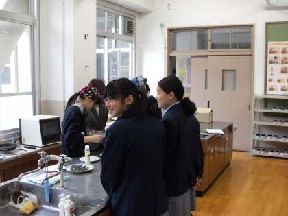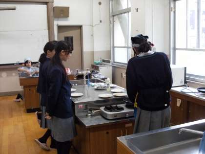 家庭科部の様子です。調理実習で関東風さくら餅をつくっていました。とても美味しそうでしたよ。