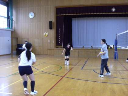 バレー部の様子です。声を掛け合いながら、懸命にボールを拾っている姿が印象的でした。