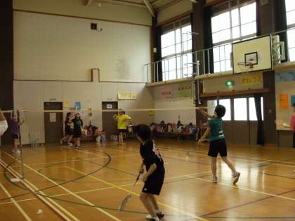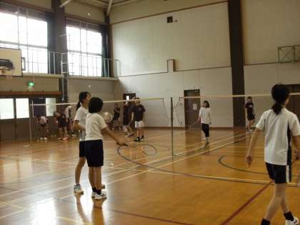 バドミントン部の様子です。1年生もラケットでシャトルを打ち込んでいました。