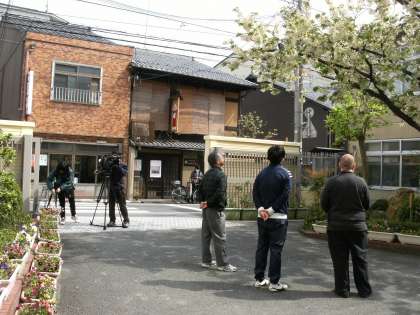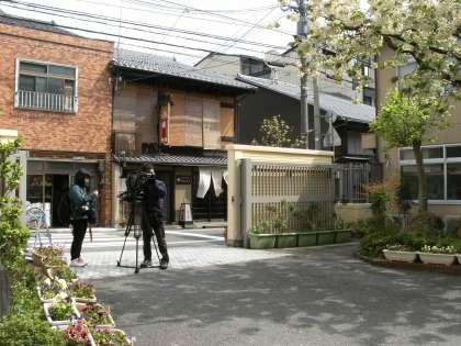 今が見ごろの区民誇りの木”サトザクラ”を取材にKBS京都 newsフェイス報道班の方々が来校されました。