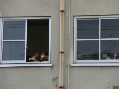 みなさんもご存知の通り,本校正門東側にある桜は珍しい色の花をつけことで知られています。今回,府内各地の”季節の話題”を取材されているnewsフェイス報道班の目にとまりお越しいただきました。取材を目にした子どもたちも校舎窓から手を振りうれしそうに歓迎していました。TV放送は下記の予定だそうです。是非,ご覧ください。