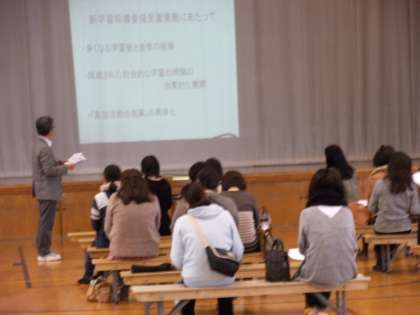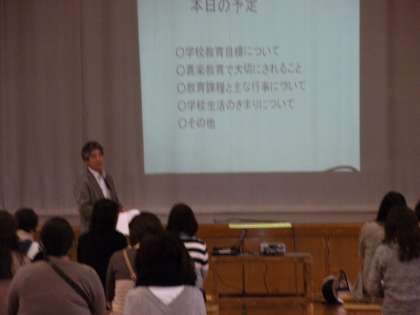 続いて、教務主任より学校教育目標や1年間の大きな行事、学校生活等の説明をさせていただきました。