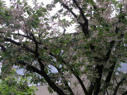 昨日までの雨で、正門のサトザクラもかなり散ってしまいましたが、雨上がりの澄んだ空気とともにサトザクラがとてもきれいでした。