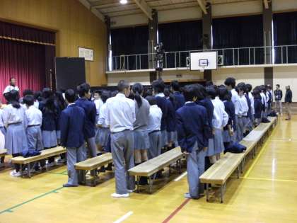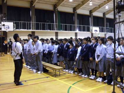 5限になって、体育館に集合です。みんなすばやく整列できました。