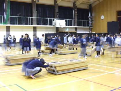 鑑賞後は、みんなで後片付けです。みんな協力して、長イスの片づけをしてくれました。