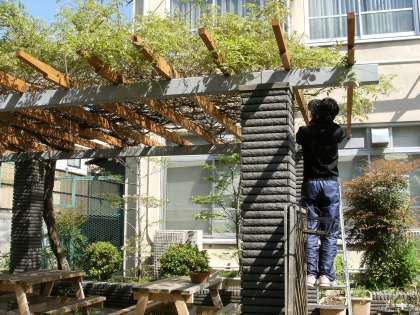 校内では、用務員さんが藤棚や花の手入れをしてくださっています。ありがとうございます。