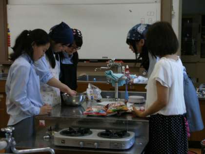 家庭科部はケーキ作りをしていました。音楽部は楽器の練習です。