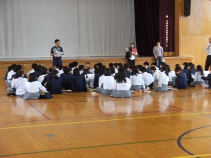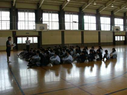 2年生の集会後に、1年生も体育館で学年集会を行いました。明日の校外学習に向けてのお話でした。明日がとても楽しみですね。