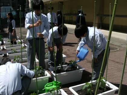 技術科で栽培に取り組んでいました。とても楽しそうです。