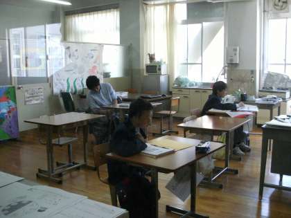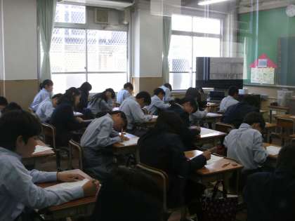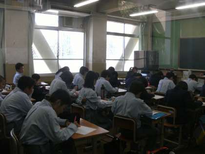 1年生は宿題の確認テストをしていました。みんな集中しています。