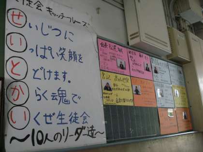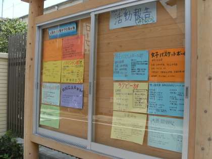 南館1階には、学校だより(校長先生が見つけたライオンハート)が掲示されています。また、正門前の掲示板には各部の春体結果が、校舎内には生徒会のキャッチフレーズ&本部長の紹介が掲示されています。生徒の皆さん、ぜひ読んでみてくださいね。