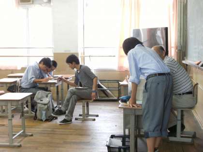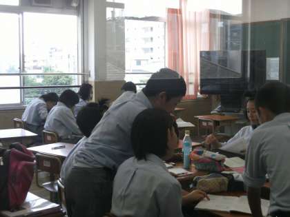 先生に質問したり、友達といっしょに教え合ったり、頑張っていました。