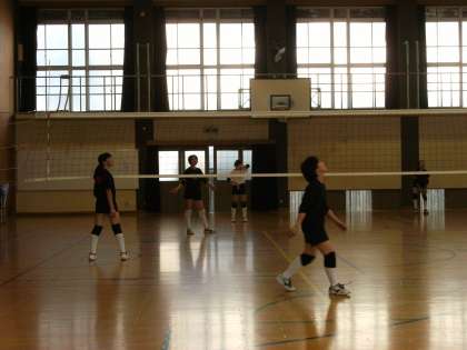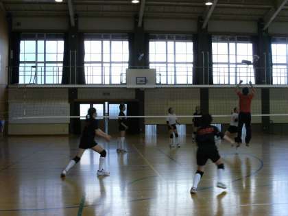 体育館でのバレー部の活動です。試合形式の練習で盛り上がっていました。