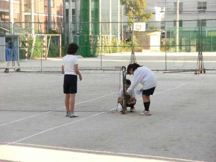 テニス部が終わりの集合をしていました。