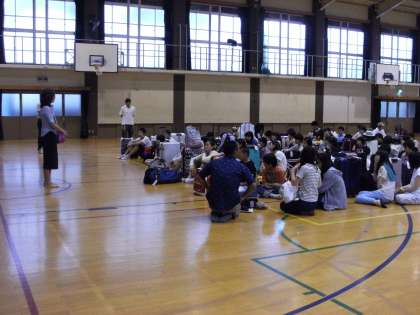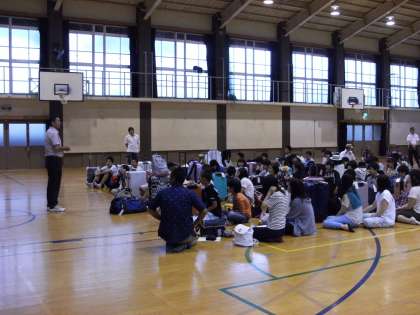 学年主任の先生や保健室の先生からの諸注意のあと、各班にデジカメを配りました。