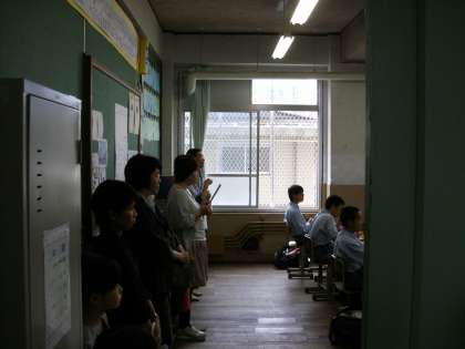 子どもたちに配慮?して 少し遠目から参観される方もおられました。
