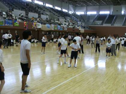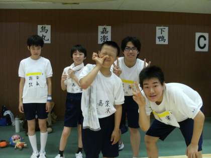 本日、府立体育館で育成合同球技大会が行われ、嘉楽中学校5名の生徒たちも参加をしました。