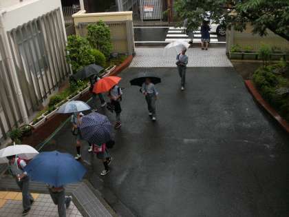 雨ですが、みんな元気に登校しています。
