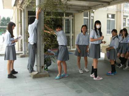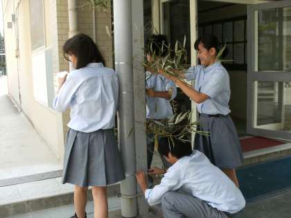 本日昼休み、「七夕」に向けて、生徒会が中心に七夕飾りができるように、竹笹を渡り廊下に設置してくれました。みんなに願い事を書いてもらい、竹に飾れるように短冊も準備してくれる予定です。楽しみに待っていてくださいね。