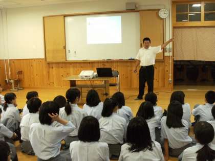 講演では、日本と朝鮮半島とのつながりや歴史を説明していただきました。また、差別をなくすためには広い視野を持って、お互いのことをよく知ることが大切だと楽しくそして熱く語っていただきました。最後に代表生徒が「差別をなくすためにも、お互いのことをよく知りあうためにも、たくさんのことを積極的に学習していきたい。」とお礼の言葉を述べてくれました。