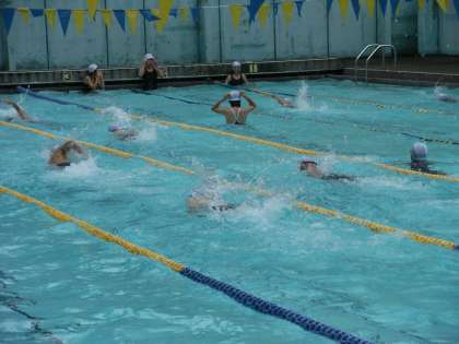 3組は体育で、水泳です。みんな気持ちよさそうに、元気に泳いでいました。