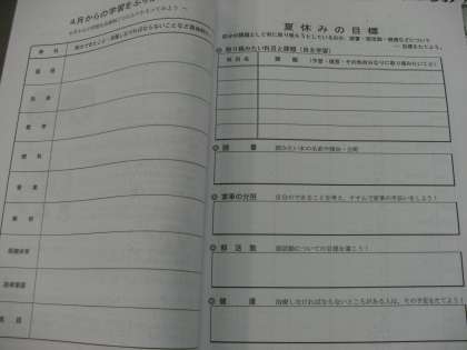 夏休みしおり指導