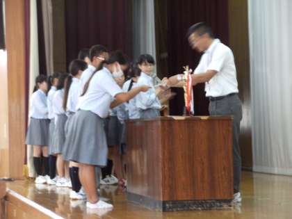 陸上部個人京都府通信陸上400m4位の表彰です。
