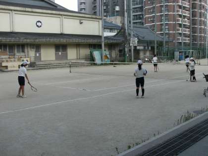 ソフトテニス部とラグビー部の練習風景です。
