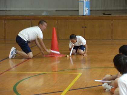 続いて「フーフー転がしリレー」です。