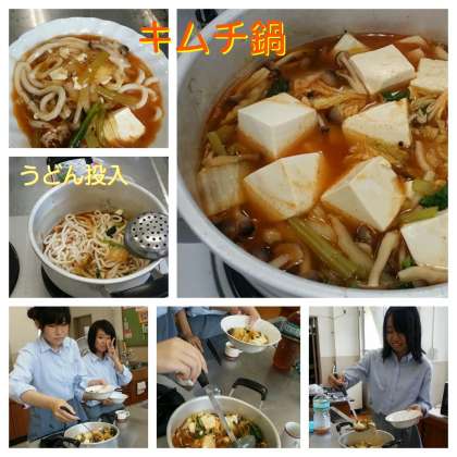 今日はキムチ鍋です。キムチ鍋を食べたことがないという部員の声から実現しました。辛さの感じ方はそれぞれでしたが、みんな美味しく食べました。最後にうどんを入れていただきました。