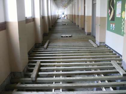 上:1階の様子(床を張り替えるための基礎づくりが進んでいます)