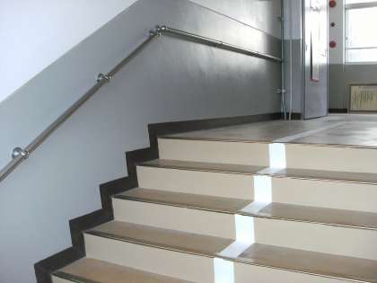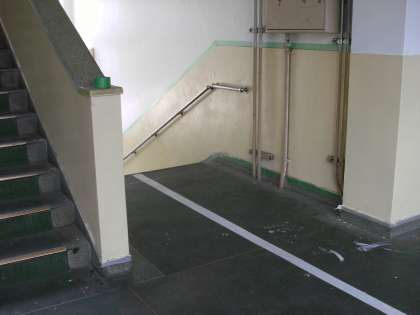 南校舎と北校舎階段付近のペンキ塗りを進めています。