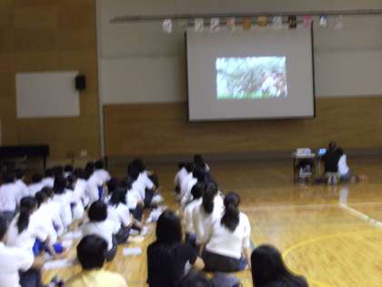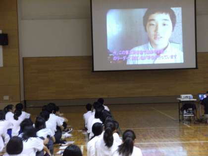 写真は、嘉楽中学校の5分間CMビデオの様子です。