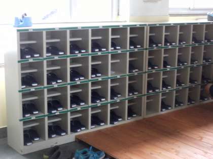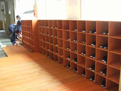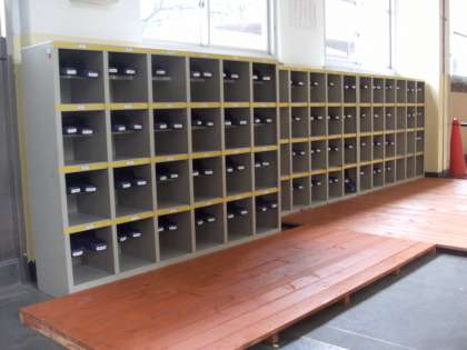 北館の1階〜3階にも、生徒用下駄箱、すのこ、傘立てが設置されました。