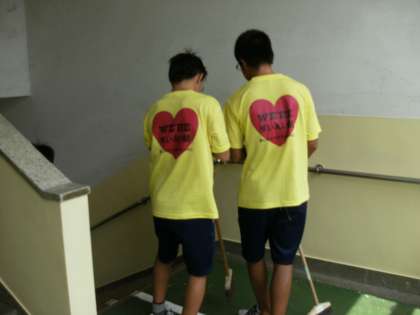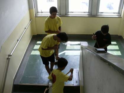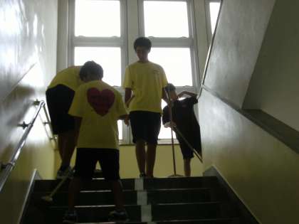 水泳部員が北校舎の階段をきれいに掃き掃除してくれました。