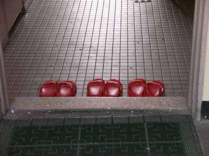 写真上:トイレのスリッパです。使い終わったあとも、きれいに並べてくれています。ありがとう!
