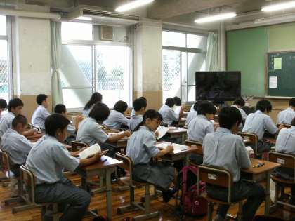 朝の様子です。1年生は1限目に夏休み明けテストがあります。テストに向けて勉強中です。みんな真剣に取り組んでいます。