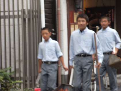 写真中央・下:今朝の清掃活動の様子