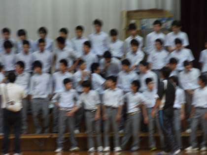 3年生の学年合唱は、学年劇のあとに歌うことになります。入場の仕方、並び方等、みんなで確認しながらの合唱練習でした。