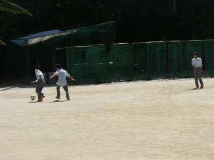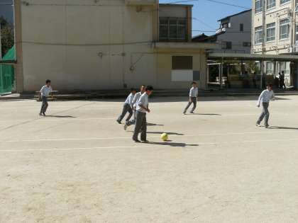 昼休み、グランドでは暑い中、数人の男子生徒がサッカーをして楽しんでいました。